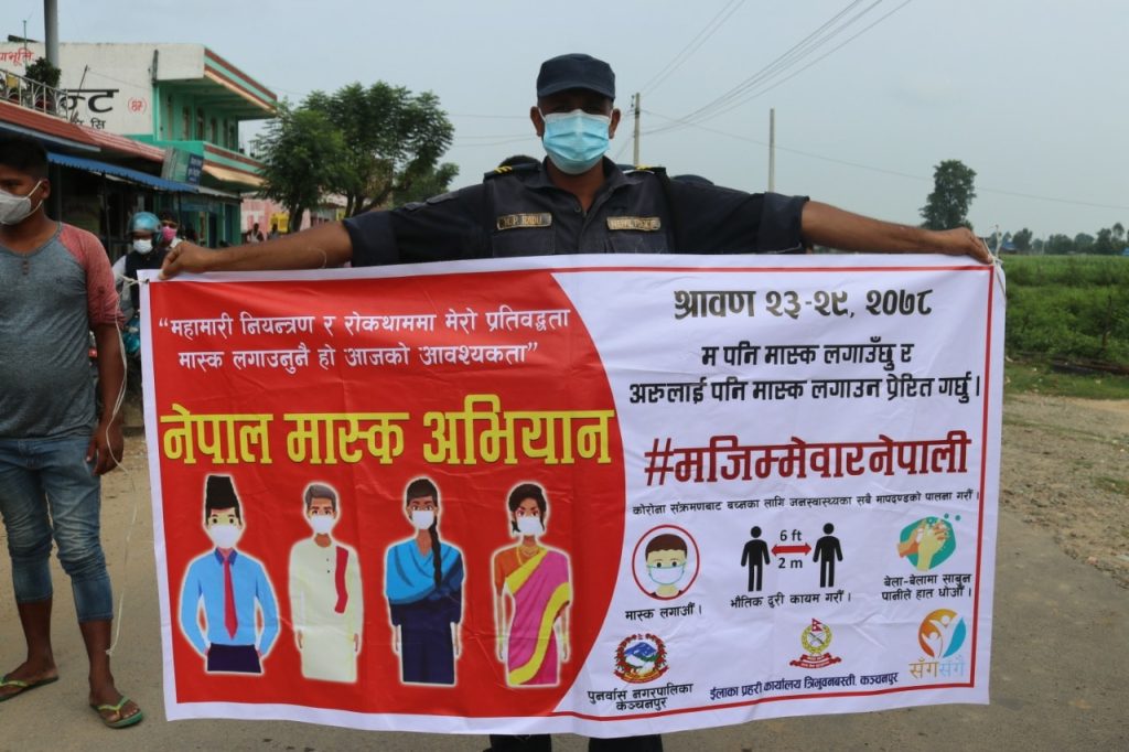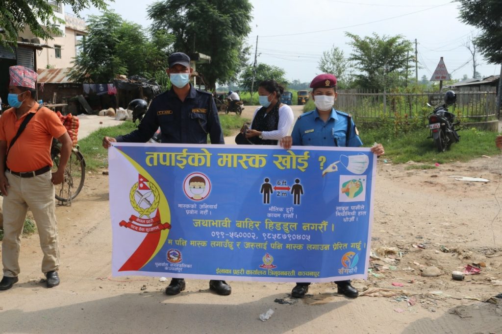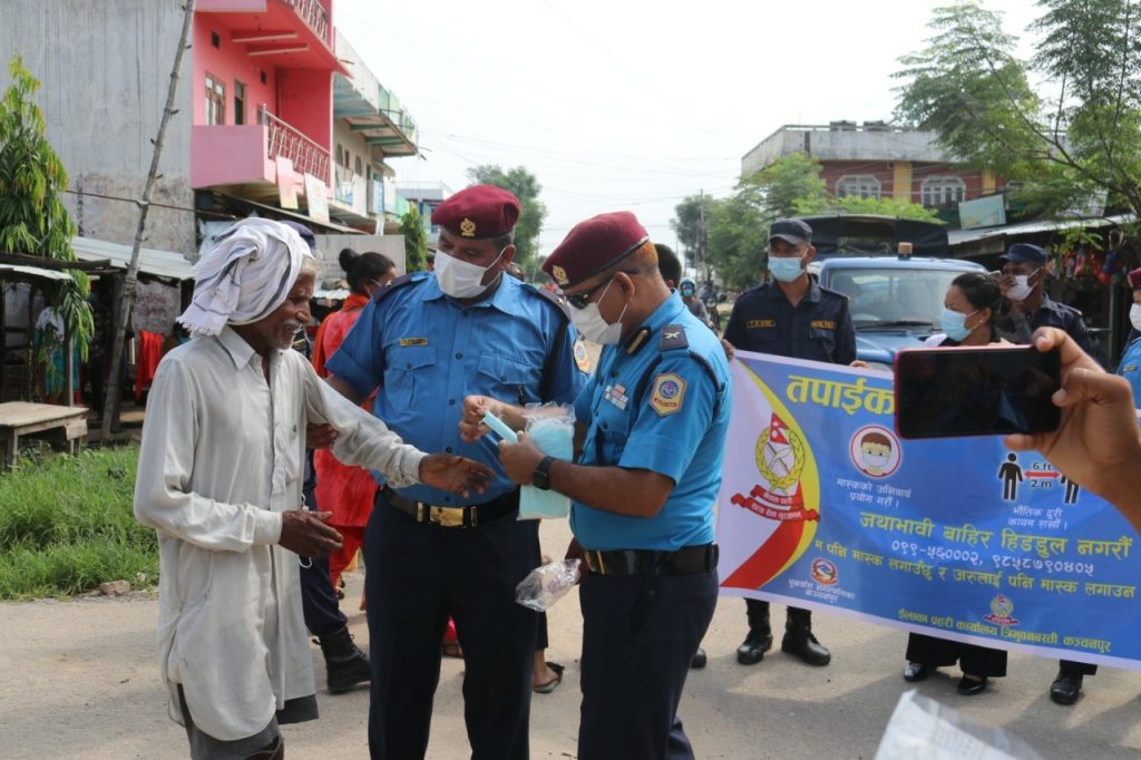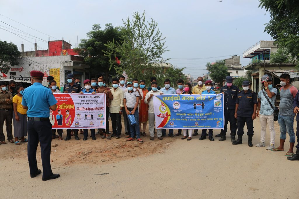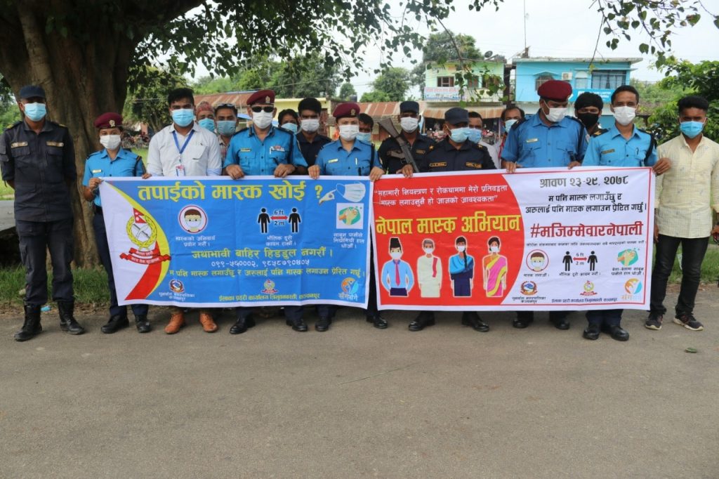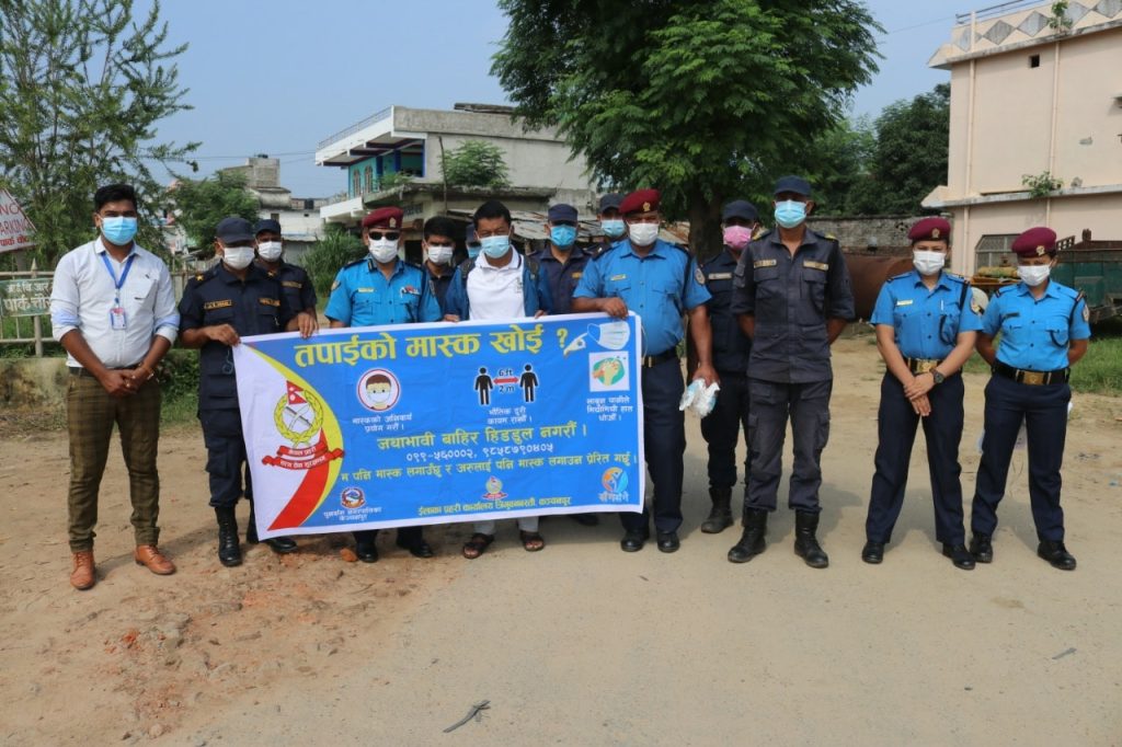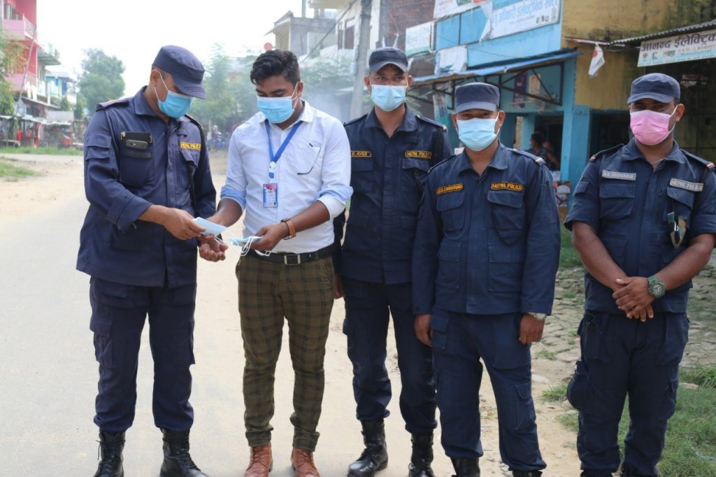 An awareness program on the significance of wearing mask and mask distribution program has been done under the ‘Where is your mask’ campaign that is run in collaboration among Area Police Office, Tribhuwanwasti, Punarwas Municipality and Sangsangai Nepal. The program was organized on 25th of Shrawan, 2078 in the market area called Town, Punarwas municipality-6, IBRD.