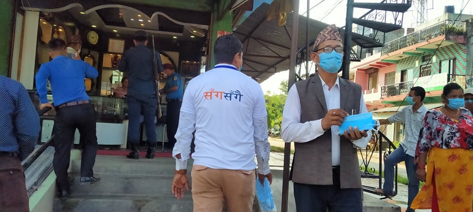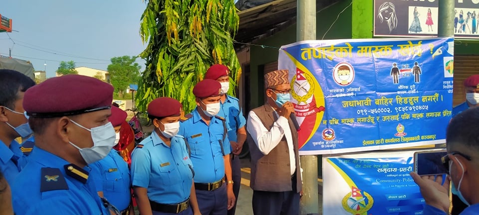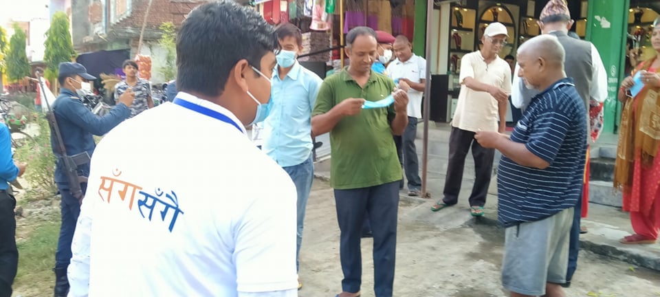 An awareness program and mask and sanitizer distribution program has been conducted in the IBRD market area of Punt was municipality-3. The program done in mutual collaboration in between Area Police Office. Tribhuwanwasti and Sangsangai Nepal on the occasion of Nepal Police Day.