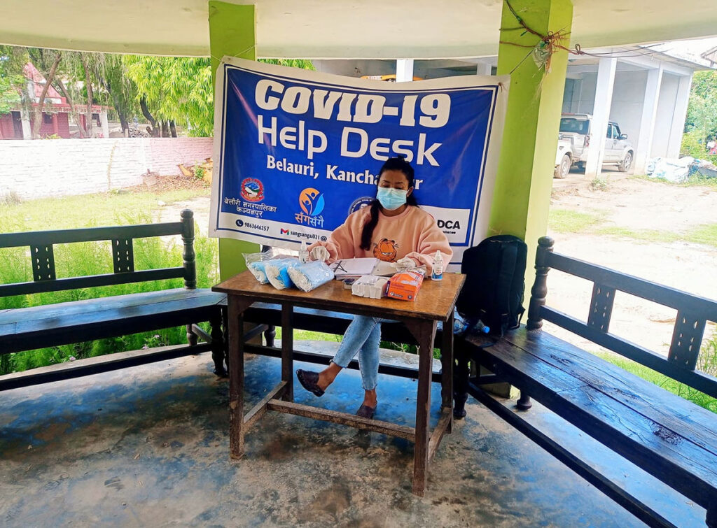 We brought the concept of a Help-desk establishment in Palikas that is involved with. Altogether, it established four help desks in collaboration with Palikas, Beldandi Rural Municipality, Belauri Municipality, Laljhadi Rural Municipality, and Punarwas Municipality. The purpose behind this was to follow precautions on COVID-contact risk. Also, it was to provide basic health check-up facilities to the Palika visitors. This is because Palikas were one of the responsible and active agents in minimizing COVID risk during the peak time. They had to go to locals to provide health facilities and nutritional foods. Likewise, they had to provide food and groceries to the lower-class families who were shut inside the rooms and were completely out of access to food. Moreover, the Palikas had to run administrative work equally. On the other side, there was a pointless rumor of fighting with Corona applying nonsense techniques.